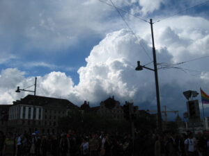 „Am Samstag des 6. Juni 2009 fand in der Zürcher Innenstadt die Europrideparade statt. Die Parade verlief in einem beachtlichen Tempo, was vielleicht darauf zurückzuführen war, dass die Strassen nicht zu lange für den Verkehr gesperrt sein sollten. Auch wenn gegen Ende der Parade das Gewitter einsetzte, fanden sich viele Leute im Festgelände beim Münsterhof und Bürkliplatz ein. Mir gefiel es, an einer grossen Demonstration teilzunehmen. Für mich stand der menschenrechtliche Aspekt im Vordergrund, während es vor 2 Jahren am CSD die Party war.““Am Samstag des 6. Juni 2009 fand in der Zürcher Innernstad die Europrideparade statt. Die Parade verlief in einem beachtlichen Tempo, was vielleicht darauf zurückzuführen war, dass die Strassen nicht zu lange für den Verkehr gesperrt sein sollten. Auch wenn gegen Ende der Parade das Gewitter einsetzte, fanden sich viele Leute im Festgelände beim Münsterhof und Bürkliplatz ein. Mir gefiel es, an einer grossen Demonstration teilzunehmen. Für mich stand der menschenrechtliche Aspekt im Vordergrund, während es vor 2 Jahren am CSD die Party war.“